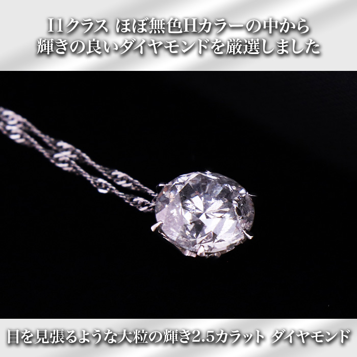 ●ダイヤ:1石2.5ct(I1クラス・Hカラー)