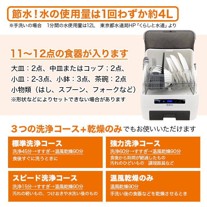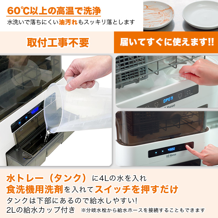 水タンク1回約4Lで洗える!高温洗浄&高温温風乾燥☆工事不要
