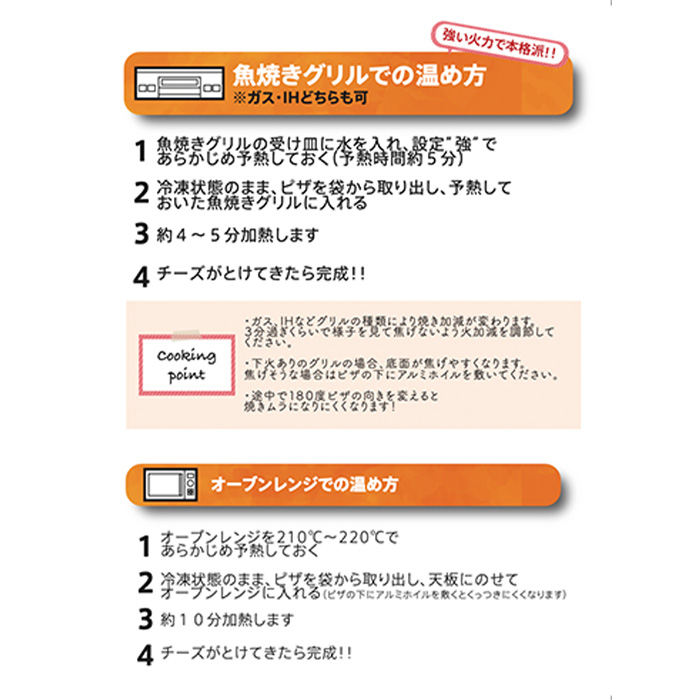 冷凍のままオーブントースターや魚焼きグリルで焼くだけで本格的なピザが楽しめます。