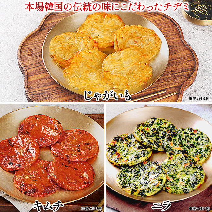 じゃがいもチヂミ、キムチチヂミ、ニラチヂミ、各1袋、計3袋セット