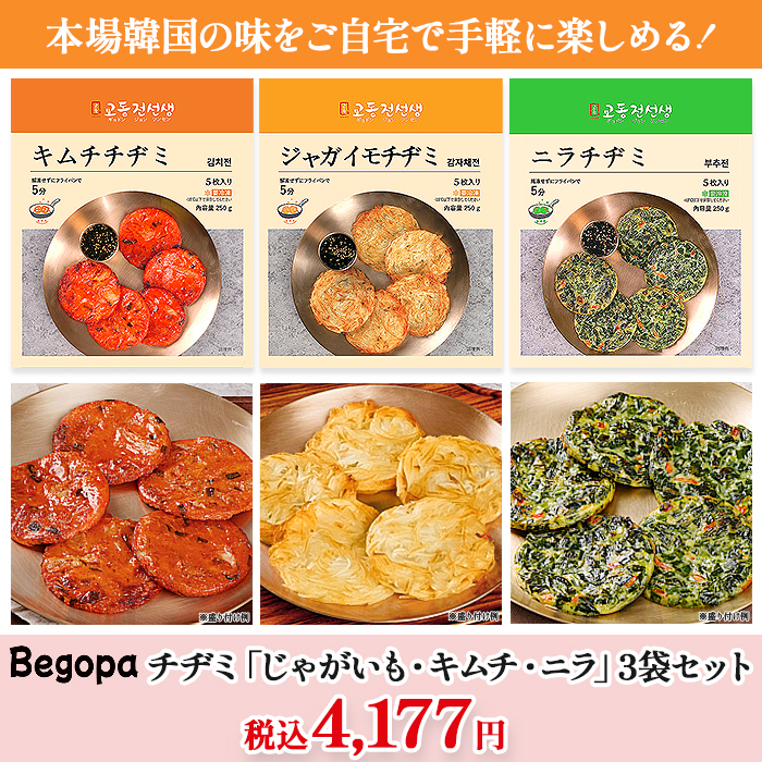 ベゴパ チヂミ「じゃがいも・キムチ・ニラ」3袋セット