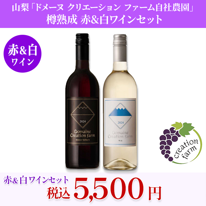 山梨「ドメーヌ クリエーション ファーム自社農園」 樽熟成 赤&白ワインセット