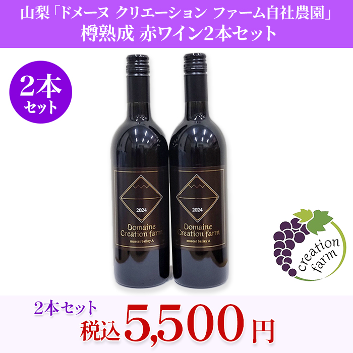 山梨「ドメーヌ クリエーション ファーム自社農園」 樽熟成 赤ワイン2本セット