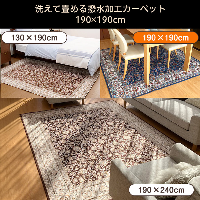 洗えて畳める撥水加工カーペット190×190cm