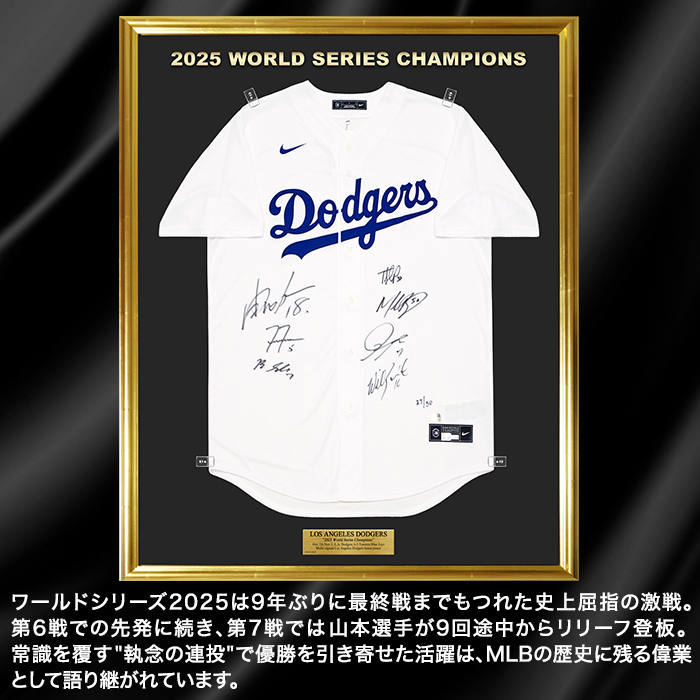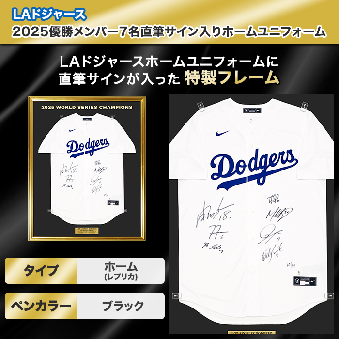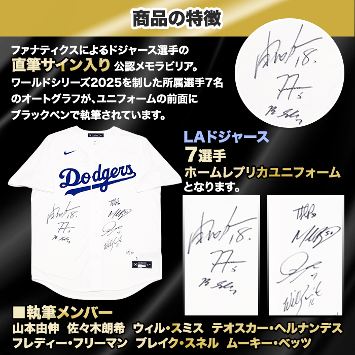 [世界限定50枚] ドジャース2025優勝メンバー7名直筆サイン入りホームユニフォーム