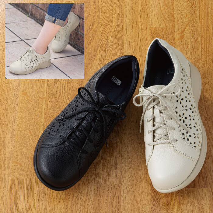 <高井さんの靴>牛革5E花柄パンチングシューズ