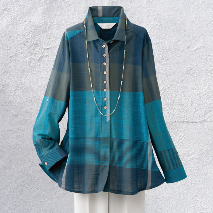 ボタンデザインロールアップブラウス