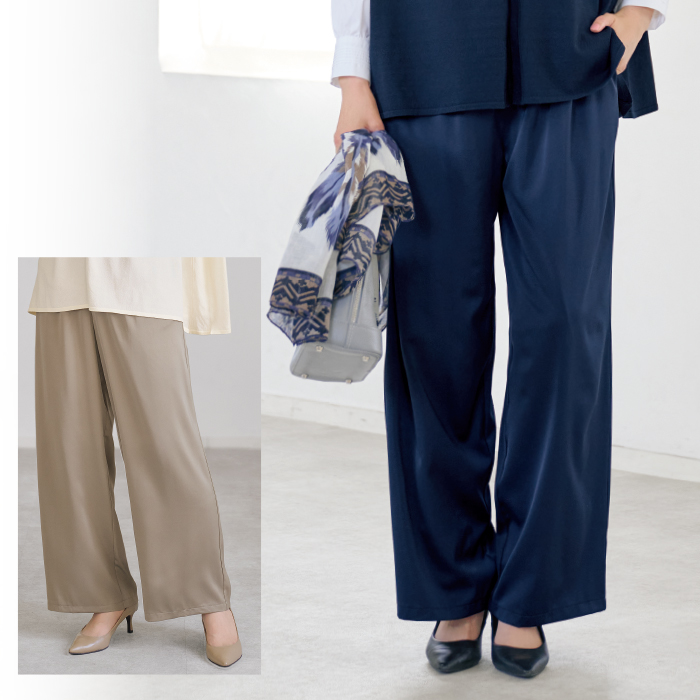 サテン素材ワイドパンツ