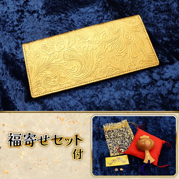 純金箔革財布 フラワー柄長財布(福寄せセット付)
